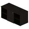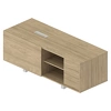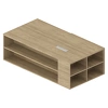 - Сервисная тумба выполняет функцию системы хранения. В ней предусмотрены: выдвижные ящики для хранения папок и личных вещей, открытые секции с полками для книг и портфелей, отделение с дверью-купе для размещения системного блока.