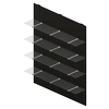 - Стеклянные полки в стеновых панелях выполняются из закалённого прозрачного стекла толщиной 6 мм и устанавливаются на металлические кронштейны цвета «алюминий матовый».
